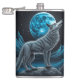 Lone Wolf and Full Moon Black and Blue Hip Flask