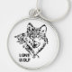 Large round premium metal keychain with an image of a sketch of a lone wolf (Canis lupus) with optional text. See matching round double-sided acrylic keychain and round button. See the entire Nature & Wildlife Keychain collection in the ACCESSORIES section.
