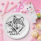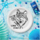 Set of eight 9” paper plates with an image of a sketch of a lone wolf (Canis lupus) and optional text on white. See matching mug and round sandstone coaster. See the entire Nature & Wildlife Plate collection in the HOME section.