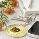 nice thick acrylic. fun little keychain add on. Would also make a fun name tag for water bottle or lunch box, backpack. cute design came out perfect.