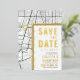 A unique save-the-date invitation card featuring a map of the city of Long Beach, CA. It features several unique features that make an impression on your future guest, including the names of the bride and groom, the city name, and the words "Save the Date" in gold foil. A gold foil heart symbol pinpoints your location of love in the city. The city map is on the front and reverse sides and can be scaled and moved around. All elements of this invite are unlocked, so have fun being creative and making it fit your style.