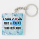 The LONG COVID - Find a Cure - FUND RESEARCH keychain design brings attention to those that are suffering from the ill effects of post covid syndrome and the urgency of funding research to find a cure to alleviate their suffering.