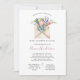 A baby shower by mail invitation is perfect for those that live a long distance from loved ones, but still want to shower the bride to be with love and gifts to help prepare her for baby. This long distance shower by mail invitation features a hand painted envelope filled with wild flowers and the request poem "It’s difficult to live so far away