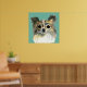 This is a detailed watercolor painting of a face of a long hair chihuahua dog. It has light and dark brown fur and white chest.