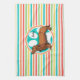 Long-haired Dachshund; Bright Rainbow Stripes Kitchen Towel