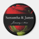 Attractive long-stemmed red rose wedding magnet personalized with your names and date.