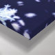 A 3D close-up of a snowflake against a background of falling flakes in a dark winter night sky.