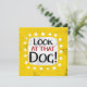 "Look At That Dog!" is a fun text design with a white accent shape surrounded by white whimsical textured dots.