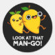 Look At That Man-go Funny Fruit Pun Dark BG Classic Round Sticker