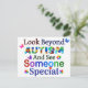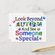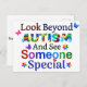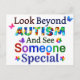 Inspirational quote of “Look Beyond AUTISM And See Someone Special” with colourful Autism puzzles to support autistic children and their families.