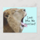 Original photo of a male lion with his mouth wide open, and his tongue sticking way out and "Look Ma, No Cavities!" in loud bold font blasting right next to his open mouth showing his big teeth. Light blue background can easily be changed to any colour. Just click on customize and then click on colour to change it. A perfect and funny postcard for dentist offices for dental appointment reminders.