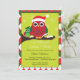 Look Whoooo's Having A Baby, Christmas holiday themed baby shower invitation. Featuring a mom and baby owl on a snowy tree limb with an argyle background in red, green and white.
