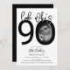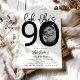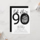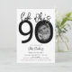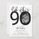 Celebrate the big 9-0 in style with our customizable and chic 90th birthday invitation! This cleanly designed invitation plays with bold, black typography and a classic white background to emphasize the milestone you've reached. Incorporate your favorite photo into the design, tucked within the zero of '90', setting a personal and memorable tone for your party. Easy to personalize, you'll get a distinct invitation as unique and stylish as you are!