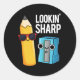 Lookin Sharp Funny Pencil Pun Dark BG Classic Round Sticker