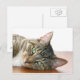 Brown with white tabby cat and green eyes looking at you photo postcard
