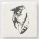 Protect your surfaces with this looking down tabby cat monochrome coaster. The detailed fur and elegant lines make it a conversation piece.