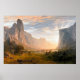 This is a reproduction Albert Bierstadt's masterpiece "Looking Down Yosemite Valley" of 1865. This oil on canvas painting was based on Bierstadt's sketches and is a good example of the artist's work, particularly in its very large size and panoramic view. Bierstadt was born in 1830 Solingen, Germany and moved with his family to Massachusetts the next year. He was a member of the Hudson River School founded by Thomas Cole and first went west in 1859. Though he sold his works for handsome prices, he was not fully appreciated by contemporary art critics. Nevertheless he was elected to the National Academy in 1860 He died in 1902 New York City. This painting measures 64 inches by 96.3 inches and is in the Birmingham Museum of Art in Birmingham, Alabama.