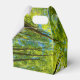 Looking up through green tree leaves favor box
