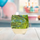 Looking up through green tree leaves stemless wine glass
