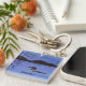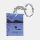 Un tableau aquarelle d'un huard sur un lac en soirée orne ce porte - clé personnalisable !