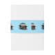 A pair of loons on the lake with a warm sunset behind them, all set against a blue backdrop
