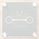 For equestrians and horse lovers, this coaster features a trompe l'oeil illustration of a gold loose ring snaffle bit between your monogram and name.