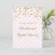 Les invitations nuptiales personnalisées de douche avec le motif de confettis d'or, pastel léger rougissent les rayures roses et blanches, et le lettrage manuscrit de style. Personnalisable avec votre texte.