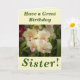 Quatre belles fleurs d'orchidées font une belle image pour cette carte d'anniversaire fleurie pour Soeur. Le texte peut facilement être personnalisé selon vos souhaits.