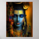 ✨ Golden ornaments, sacred markings, and the crescent moon crown his deep blue skin, evoking his celestial role as Mahadeva, the Great God. The right side of the portrait dissolves into vibrant abstract textures, symbolizing the cosmic dance of creation and dissolution. This piece is both a visual mantra and spiritual portal — ideal for seekers of peace, depth, and awakening.