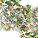 Le collage posé magnifique des beaux-arts botaniques vintages de John James Audubons de loriot, d'oiseau bleu et de beaucoup d'autres genres d'oiseaux, de fleurs et de feuille est sur ce tissu. Les images sont public domain dû à copyright expiré. Le collage est par moi.