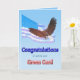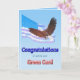 Félicitez-nous d'avoir reçu une carte verte. Un magnifique paysage de montagne avec un aigle chauve volant dans le ciel. Ajoutez un nom pour personnaliser cette carte.
