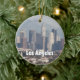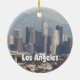 Los Angeles California Skyline with mountain behind on this commemorative ornament. Celebrate memories of your vacation or a place that you love.