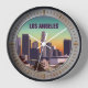 This colourful vector illustration features a gorgeous skyline dominated by skyscrapers and palm trees from downtown Los Angeles with a beautiful Californian sunset in the background.