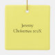 Ceramic ornament features Los Angeles California city skyline silhouette with sunset watercolor splash and latitude & longitude coordinates on pale yellow background. Personalize with name or message on back