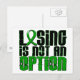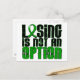 Whether you are battling Kidney Disease personally or are in the universal fight to find the cure for Kidney Disease, get the message out that you’re not taking NO for an answer with Losing Is Not An Option t-shirts, gifts, merchandise, and apparel featuring oversized grunge text and a striking green Kidney Disease support ribbon as the "O" in LOSING.