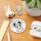 An illustrated crab drawn from the top view in a stenciled style. The claws are opened, legs are spread out, and the top of the shell is a white space for a monogram. Lost keys contact info; family name, phone number, and address done in an easy fill in the blank format. The background has been left white to make it easier to spot the lost keys, granted you can change the background colour also.