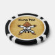 A humorous black-belt karate master, with a poo emoji as head, in a fighting stance. Text reading, "Kung Poo" appears above the image. Everything is superimposed on an old paper background image. Customise by adding the chip value, or other additional text, on the reverse side.