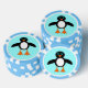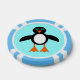 Cet ensemble impressionnant de puces de poker présente un joli personnage de pingouin avec un ventre blanc, de grands yeux bleus avec des élèves noirs et de mignons pieds oranges et bec. Ce charmant petit oiseau d'hiver ravira petits et grands. Le pingouin est assis sur un arrière - plan bleu pâle glacé pour lui rappeler son froid foyer antarctique.