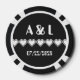 Offrez aux invités, aux demoiselles d'honneur, aux groomsmen, ou à toute autre personne qui assistera ou aidera avec votre mariage geek ou événement spécial un plaisir amusant avec ces jetons de poker personnalisables. Un côté de la puce de poker présente un coeur pixélisé blanc sur un arrière - plan noir onyx profond. L'autre côté dispose d'un ensemble d'exemples d'initiales et de date séparées par un motif de jeu vidéo rétro lié aux coeurs 8 bits. L'exemple de texte peut être customisé avec vos propres détails ou un message spécial de votre choix pour créer un jeton unique et personnel pour commémorer votre grand jour. Ce design correspond à n'importe quel produit de la gamme Our 8 bits Hearts in Black afin que vous puissiez rendre votre jeu thème mariage ou événement spécial aussi coordonné que vous le souhaitez.