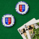Ces puces de poker sont ornées d'une armoiries de Transylvanie, avec une combinaison frappante de couleurs bleu et rouge. La teinte bleue apporte une sensation de profondeur, tandis que le rouge apporte une touche vibrante. Les armoiries complexes de Transylvanie ajoutent un air d'histoire et de mystique aux puces, ce qui en fait un ajout accrocheur à tout jeu de poker.