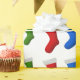 This Christmas design features red, blue and green Christmas stockings.