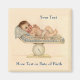 Adorable baby with big smiles is laying on blanket covered weigh scales. Soft blue and peach colours. Customize to announce birth or hand out as keepsake birth announcements. More customizable gifts with this design in my gallery.