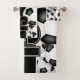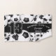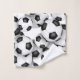 This soccer themed towel set for kids features a bunch of varied size soccer balls turned every which way on a white background - personalize the hand towel and bath towel with the athlete's name & jersey number plus team name & mascot name - by katz_d_zynes