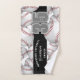 This unique towel for a softball or baseball player features varied size, realistic, clean white softballs turned every which way on a white background and prominent jersey number in grey overlying a bold, full length black colour strip, upon which you can also personalize the athlete's name, team name & mascot name - the black and grey personalization elements can be customized to match her team's colours or favourite colours - by katz_d_zynes