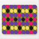 This bright mousepad is covered in lots of spots of purple, pink yellow and black arranged in rows separated by areas of dark green. This fantastic abstract brings to mind a wall covered in splodges of paint after a paintball game.