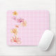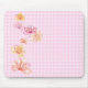 Sheer pastel pink, yellow and orange lotus flowers on pink and white gingham.