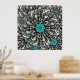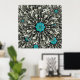 A central classic Lotus flower mandala in shades of blue and aqua, surrounded by a black and white fractal design.