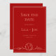 Line Art Personalize Customize Text Simple Classic Elegant Lotus Pink Red Wedding Save The Date Card