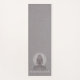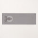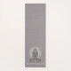 Elegant lotus pose figure yoga meditation mat featuring white on grey with a textured linen effect. The luminous sitting figure has a mandala encircling her head. For your yoga or meditation practice studio. Create an elegant look.
