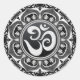 Semi transparent Om symbol on black with black and white tribal lotus mandala design round stickers